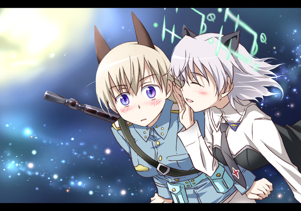 00s2girlsanimal earsantennaeblushclosed eyesgunhirschgeweih antennasmachine gunmg42multiple girlsweaponwhispering