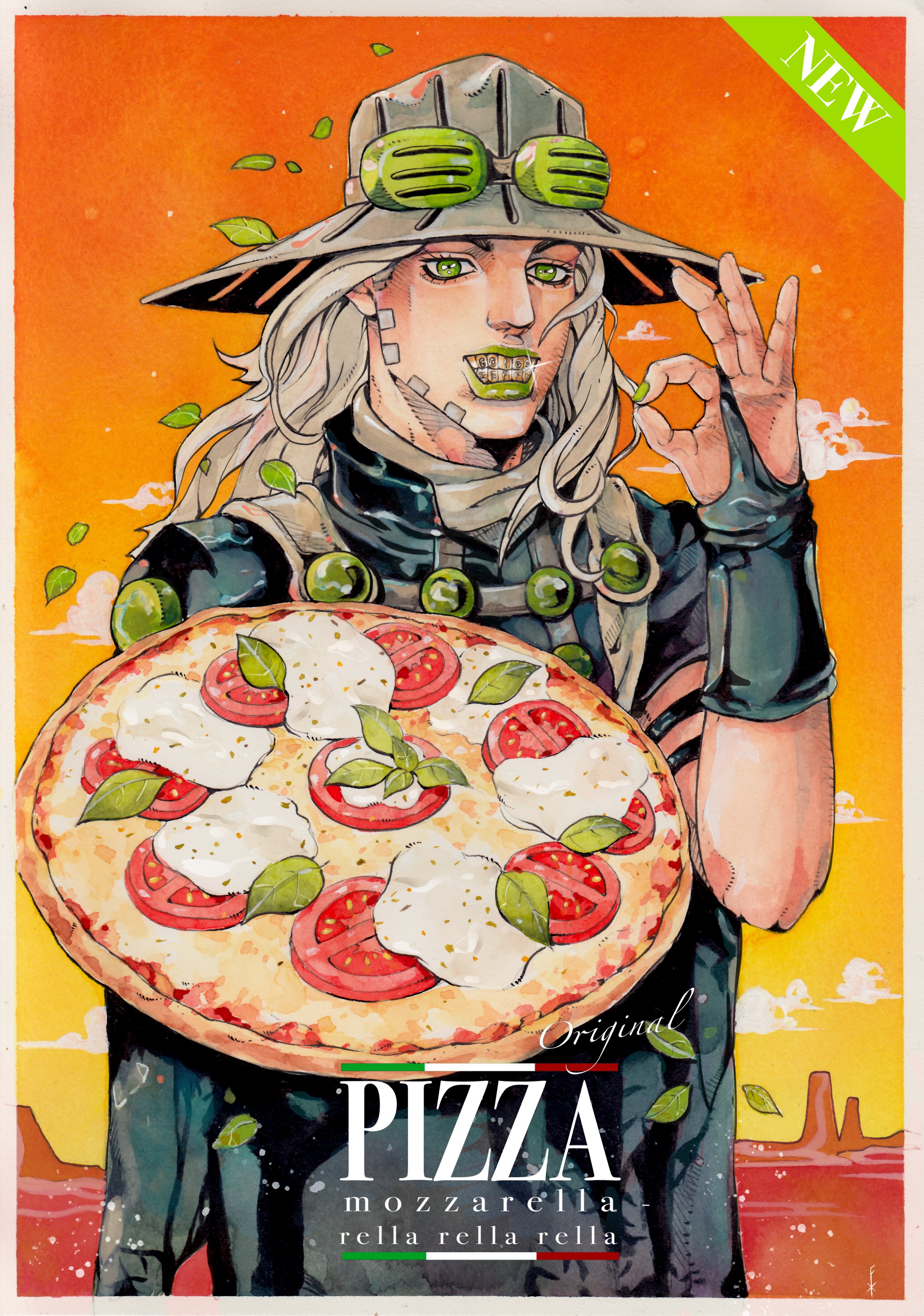 1boybeardblack bridal gauntletsblack capeblack shirtbridal gauntletscapecheese song (meme)cloudcloudy skycowboy hatenglish textfacial hairfoodgogglesgoggles on headweargold teethgreen eyesgreen lipsgrey hairgrey hatgrillshatholdingholding foodholding pizzaleaflong hairlooking at viewermakeupmale focusmemeok signorange skypizzashirtshort sleevesskysolosparkletomatotomato slice