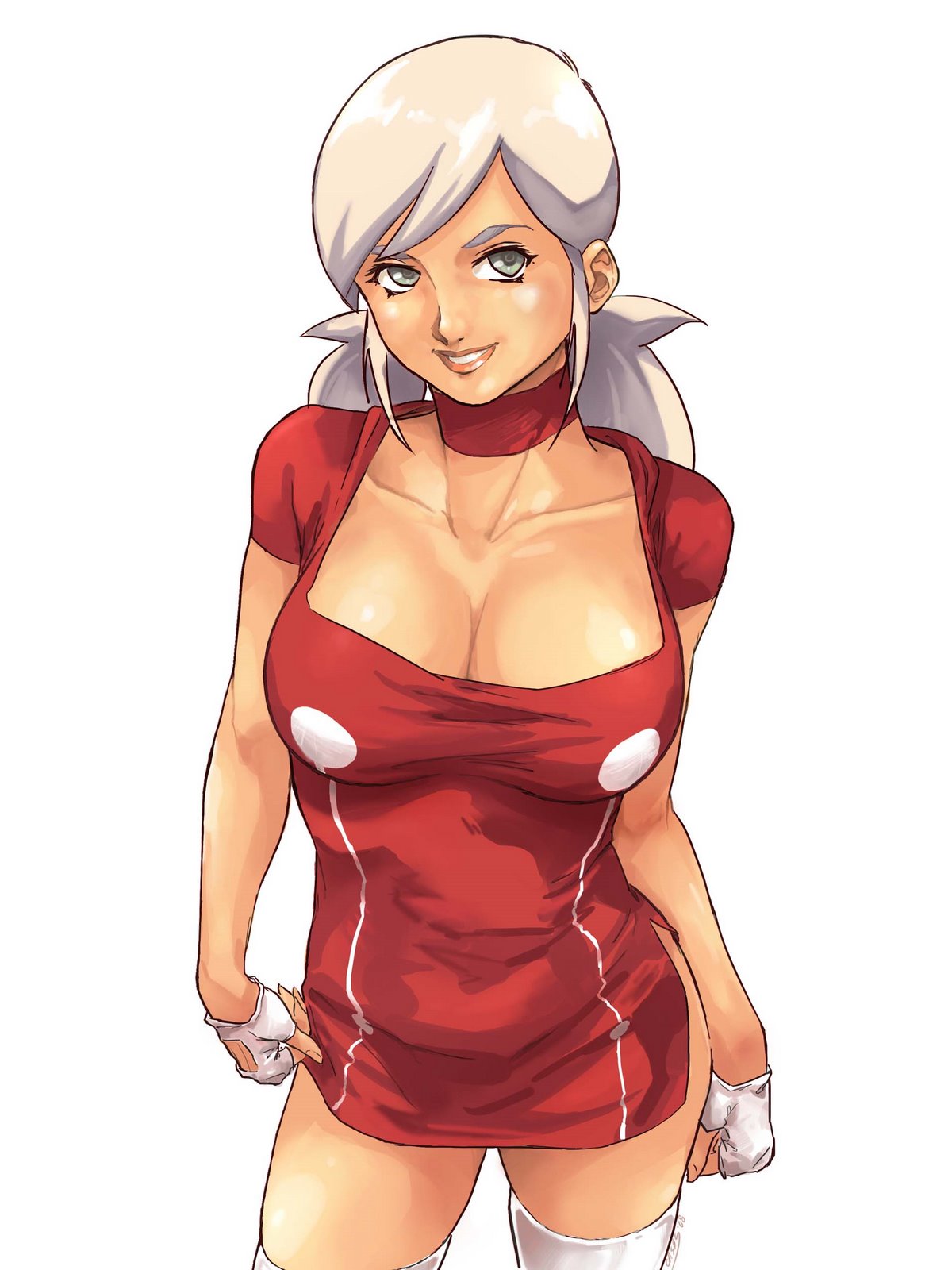 high priest (ragnarok online), poring, ragnarok online, 1girl, blonde hair, dress, female focus, full body, green eyes, high priestess, juliet sleeves, loincloth, long sleeves, no panties, puffy long sleeves, puffy sleeves, red dress, simple background, sitting, solo, thighhighs, wariza, white background, white thighhighs
