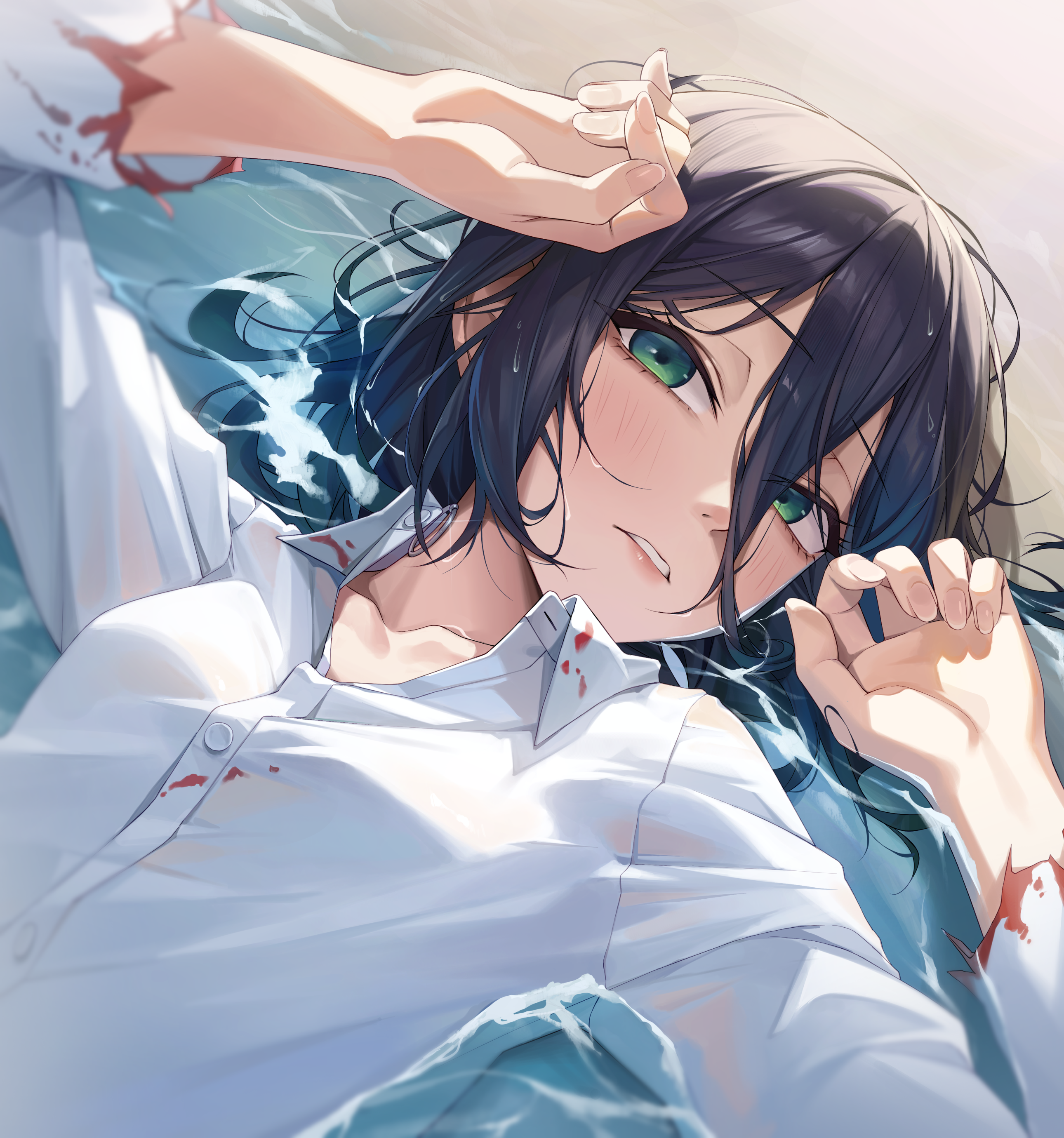 simk, yamabuki zarame, sohee, ragnarok online, 1girl, bikini, breasts, dutch angle, female focus, kooribata, long hair, long sleeves, navel, open mouth, small breasts, solo, swimsuit, white bikini, yin yang