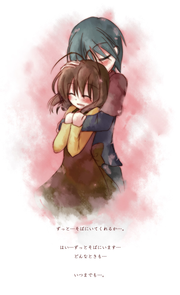 00s1boy1girlantenna hairblue hairbrown hairclosed eyescoupleheterohughug from behindhusband and wifeshort hairyuzuki (rurirara*)
