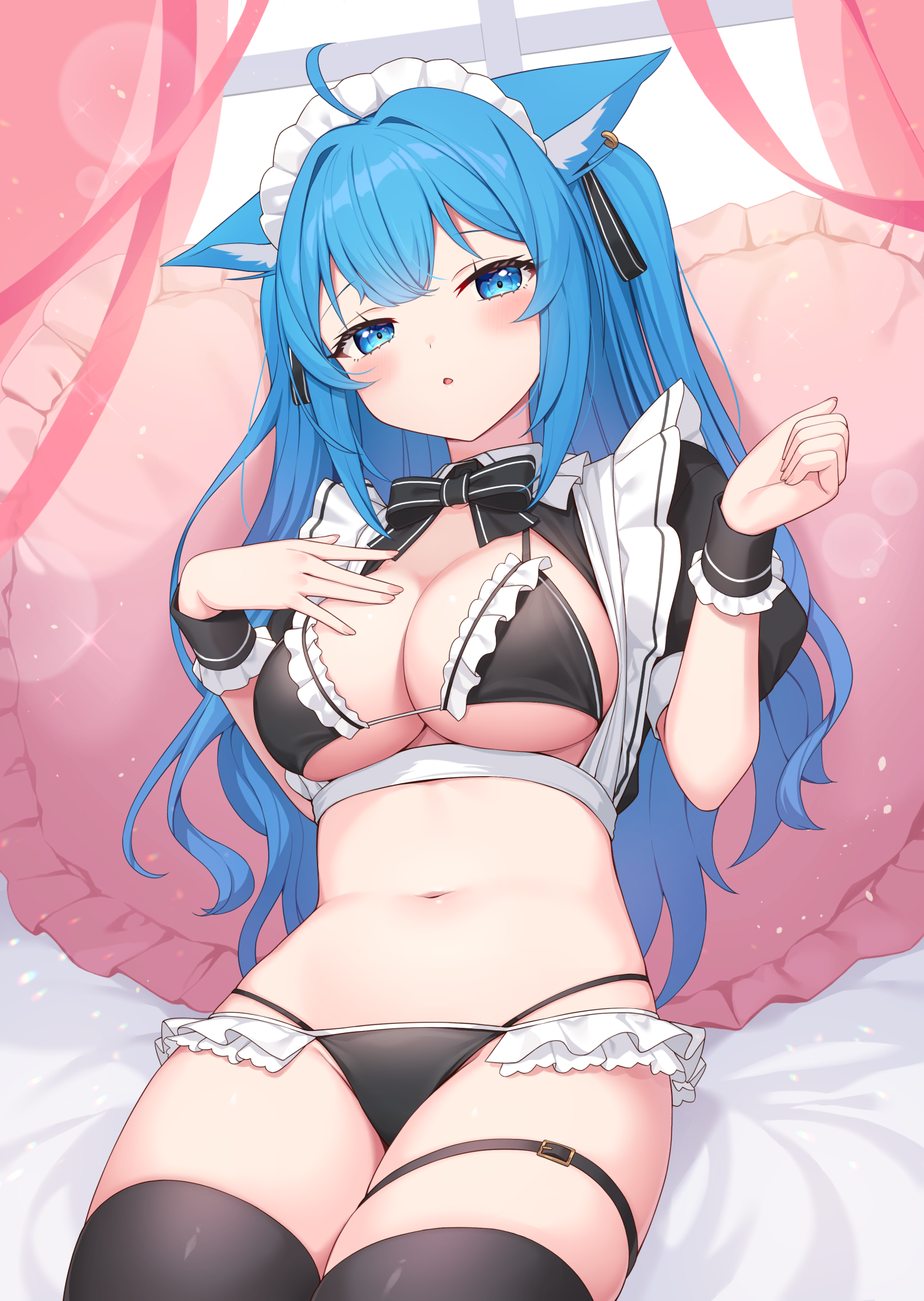 1girlahogealternate costumeanimal ear piercinganimal earsbikiniblack bikiniblack thighhighsblue eyesblue hairblushbreastscleavagecowboy shotcrop topdog earsdog girlearringsenmaidedframed breastshair intakeshands upjewelrylarge breastslong hairlooking at viewermaidmaid bikinimaid headdressnavelno pantsparted lipspuffy short sleevespuffy sleevesrecliningshort sleevesshrug (clothing)single earringsittingsolostomachstring bikiniswimsuitthigh strapthighhighstwo side upunconventional maidvirtual youtuber