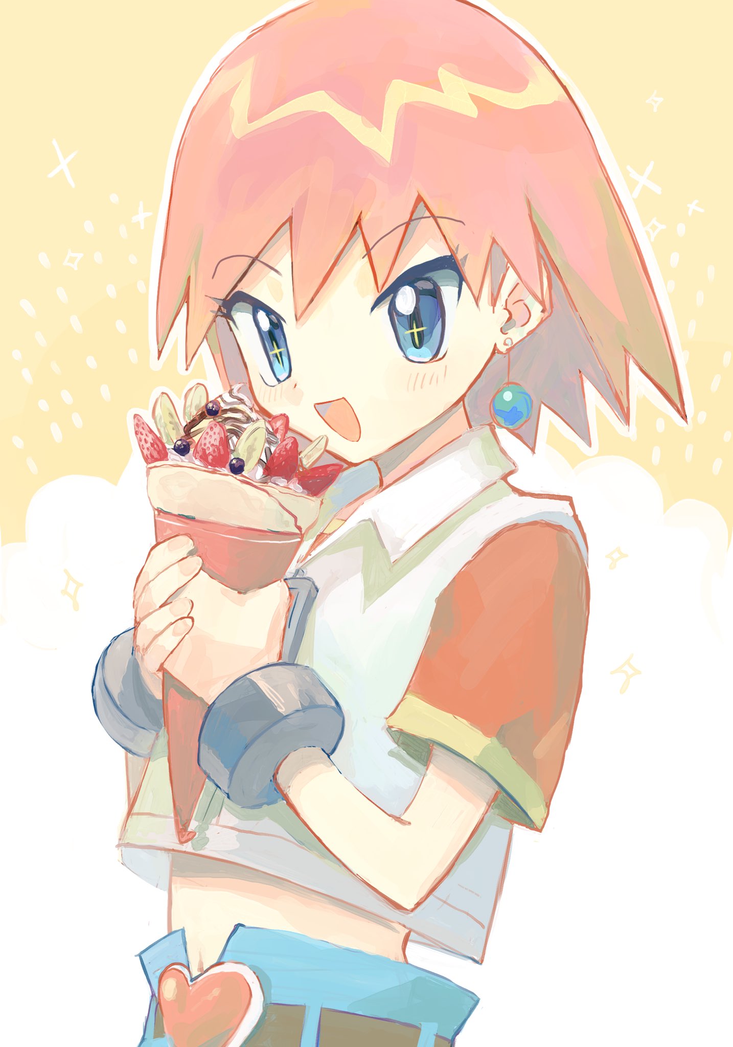 :d1girlbeltblue eyesblushbrown beltcrepeearringsfoodheart belt buckleholdingholding crepeholding foodjewelrymidriffnavelopen mouthpink hairshort hairshort sleevessmilesolostar (symbol)star-shaped pupilssymbol-shaped pupilsupper body