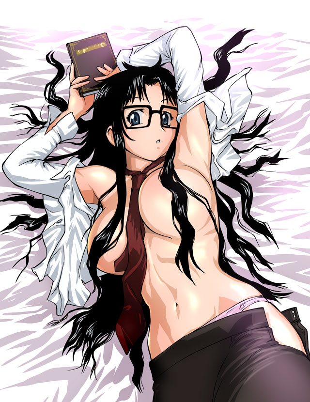 00s1girlarmpitsbedbed sheetblack hairblack-framed eyewearblue eyesbookbreastscensoredconvenient censoringdress shirtfemale focusglasseshair censorhair over breastshuge breastslyingnavelnecktieopen clothesopen shirtpantiesred necktieshirtsolothongunderwearunzipped
