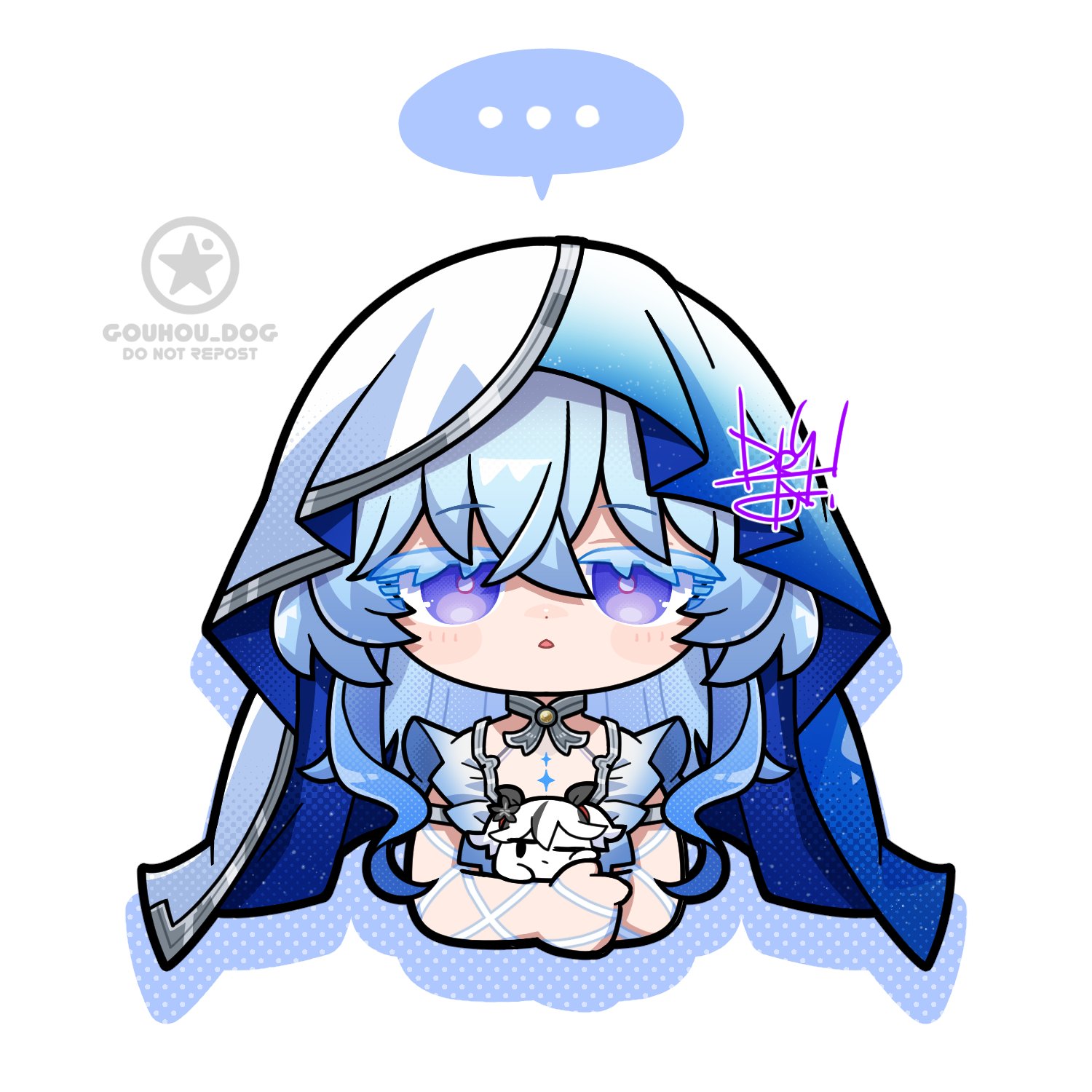 1boy1girlanimalizationarmletartist logoblake bloom (wuthering waves)blue hairblue veilcolored eyelasheshair between eyesholdingjewelrylogolong hairlooking at viewerparted lipspurple eyessimple backgroundsleevelesssolospoken ellipsisstraight-ontwo-tone veilveilwhite backgroundwhite veil