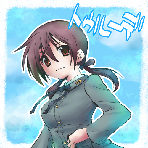 00s1girlborderbrown eyesbrown hairbuttonscoatfemale focuslong sleeveslooking at viewerlow twintailsshort hairsolotext focustwintails
