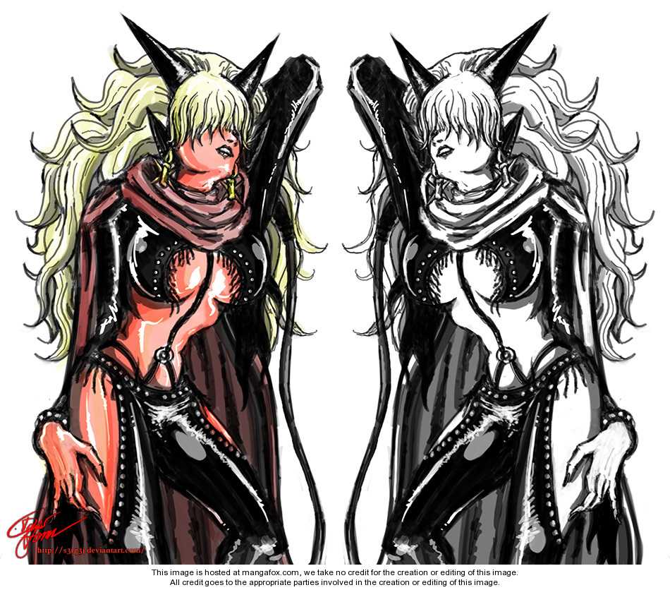 1girlanimal earsblonde hairbreastscapefemale focushair over eyeshornsimpel downlarge breastslong hairmirror imagemultiple personapopped collarunderboobwhip