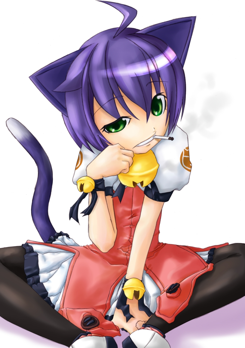 00sahogeanimal earsbellcat earscat tailcigarettegreen eyespantyhosepurple hairsmokesmokingsolotail