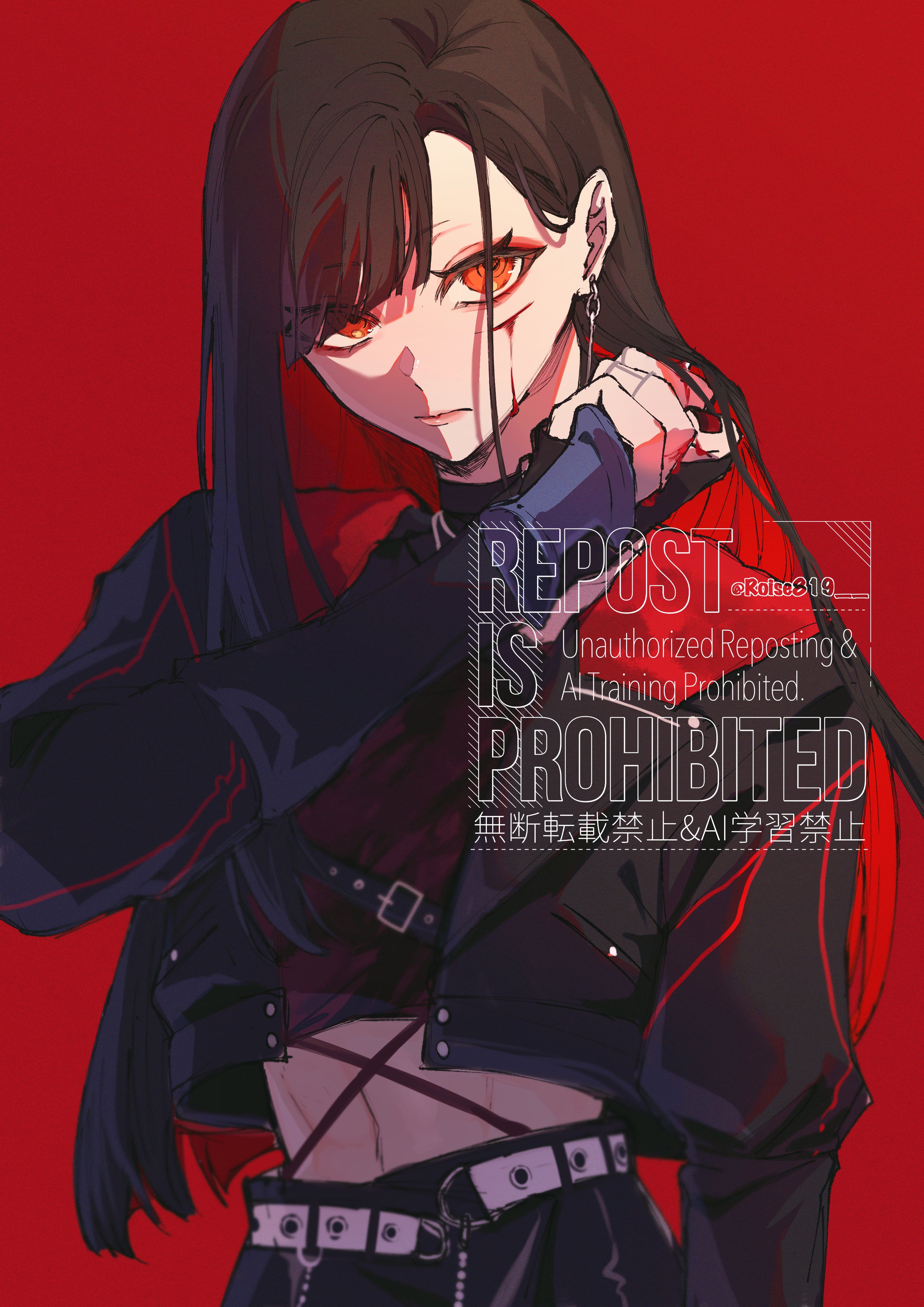 1girlabsarm at sidebeltblack hairblack jacketblack shirtblack skirtbleedingbloodclosed mouthcolored inner haircropped jacketcropped shirtcutsdiagonal bangsearringsgradient clothesgradient shirthair behind earhand upinjuryjacketjewelrylong hairlong sidelockslong sleeveslooking at viewermidriffmulticolored hairnail polishnavelofficial alternate costumeofficial alternate hairstyleorange eyesred backgroundred hairred nailsred shirtshirtsidelightingsidelockssimple backgroundsingle sidelockskirtsolostraight hairtwitter usernametwo-tone hairupper bodywatermarkwhip the wimp girl!! (project sekai)wiping blood