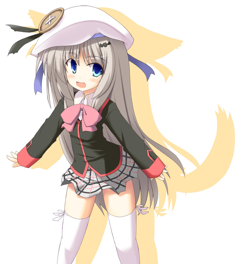 1girlanimal earsblue eyesbowdog earsfemale focushatlong hairpink bowschool uniformsolothighhighszettai ryouiki