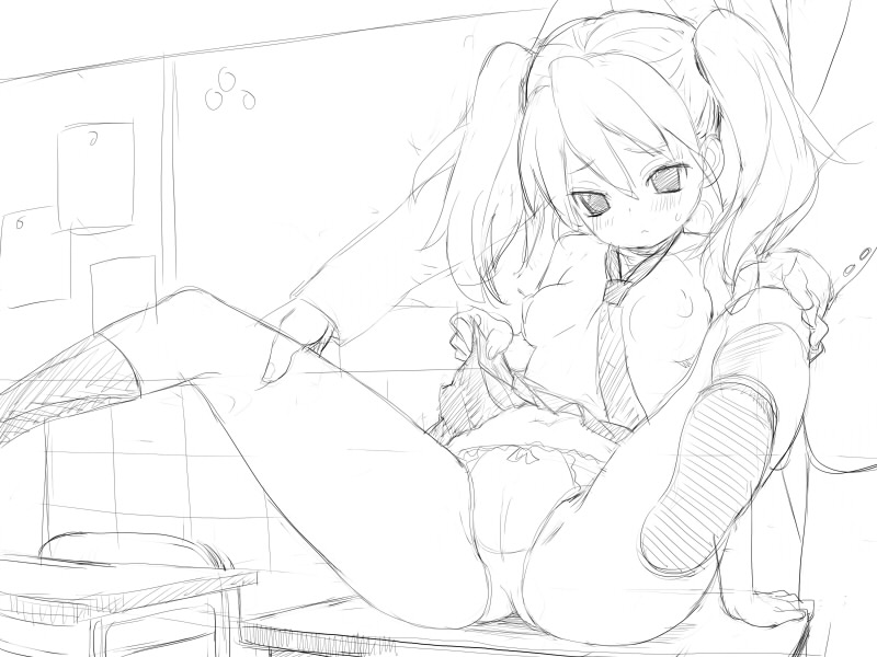 e=mc2 (mosimosi), highres, scan, animal ears, cat ears, clothes lift, glasses, panties, pantyshot, skirt, skirt lift, solo, striped clothes, striped panties, underwear