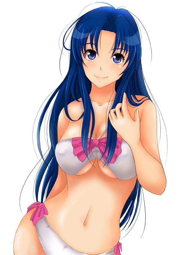 00s1girlbandeaubare shouldersbikiniblue eyesblue hairblushbreastscleavagecovered erect nipplesfemale focuship focuslarge breastslong hairlooking at viewermatching hair/eyesnavelribbonshiny skinside-tie bikini bottomsimple backgroundsmilesoloswimsuitunderboobwhite bikiniwide hips