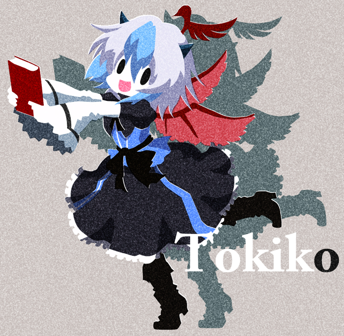 1girlbookcharacter namefemale focusfull bodyhead wingshornsmulticolored hairshort hairsolostandingwings