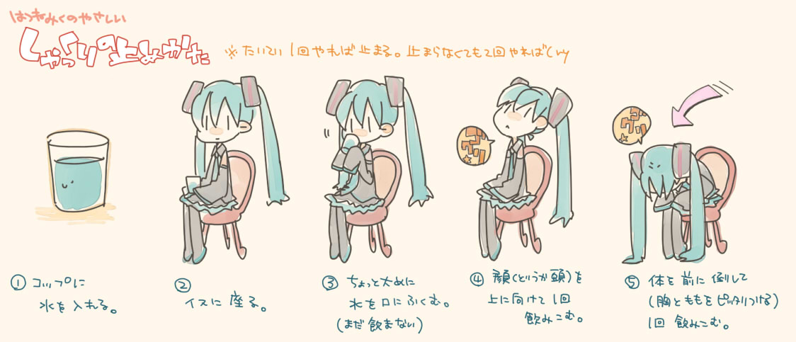 1girlaqua hairchibidetached sleevesdrinkhiccuphow tolong hairnecktiesittingtwintailsvery long hair