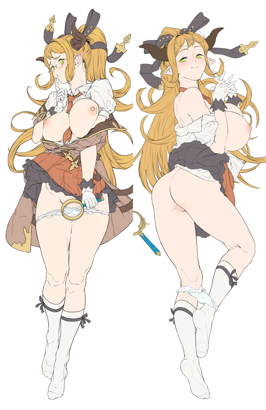 assblushbreastsfemaleFlag for Deletionglassesgloveshornslarge breastslong hairlooking at viewerlyingmagnifying glassnippleson backopen clothespointy earsponytailsmilesockssolotied hairwhite gloves