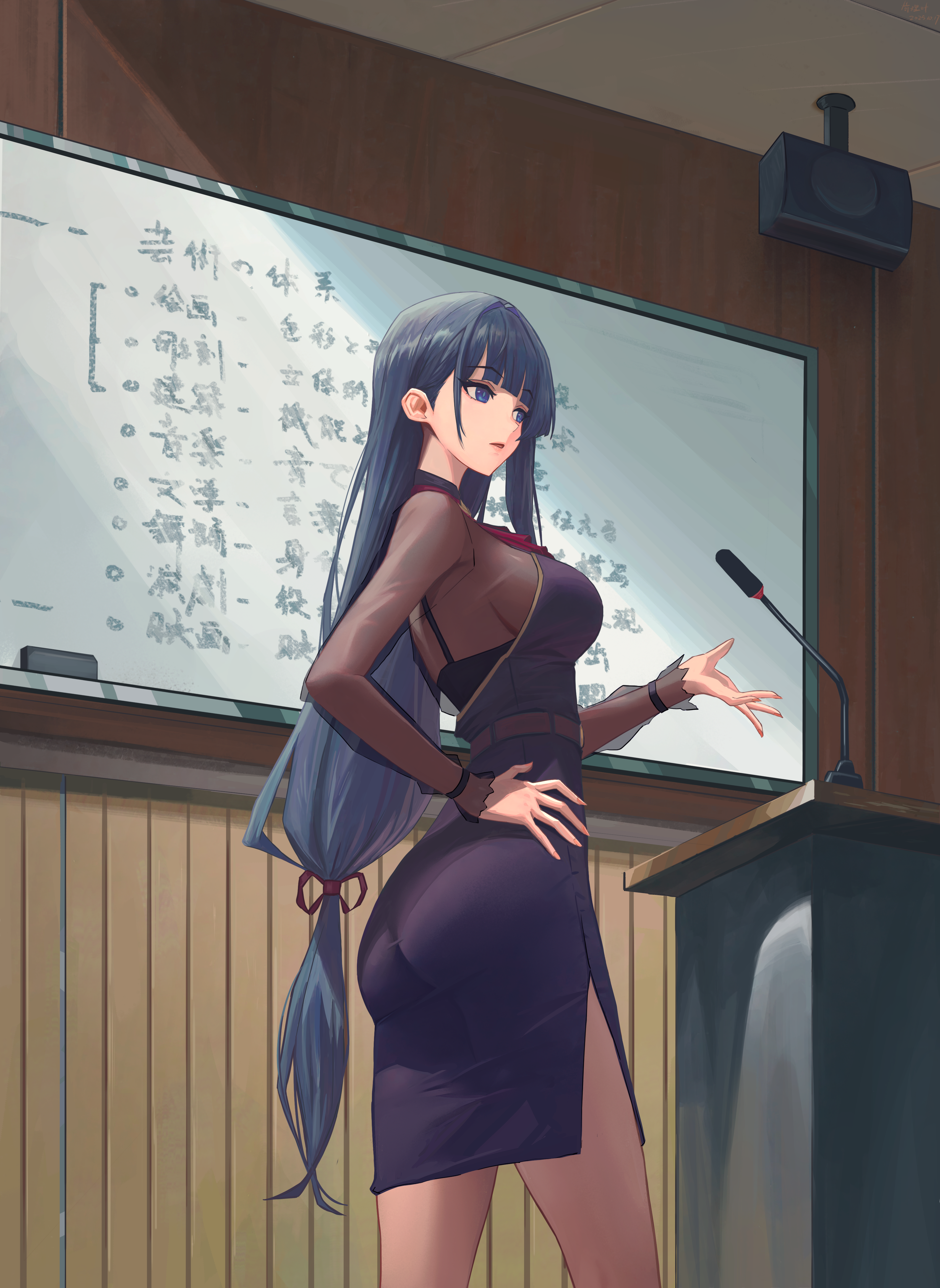 teevo, jack-o' valentine, guilty gear, guilty gear xrd, all fours, ass, belt, jack-o' challenge, leaning forward, long hair, looking at viewer, sketch