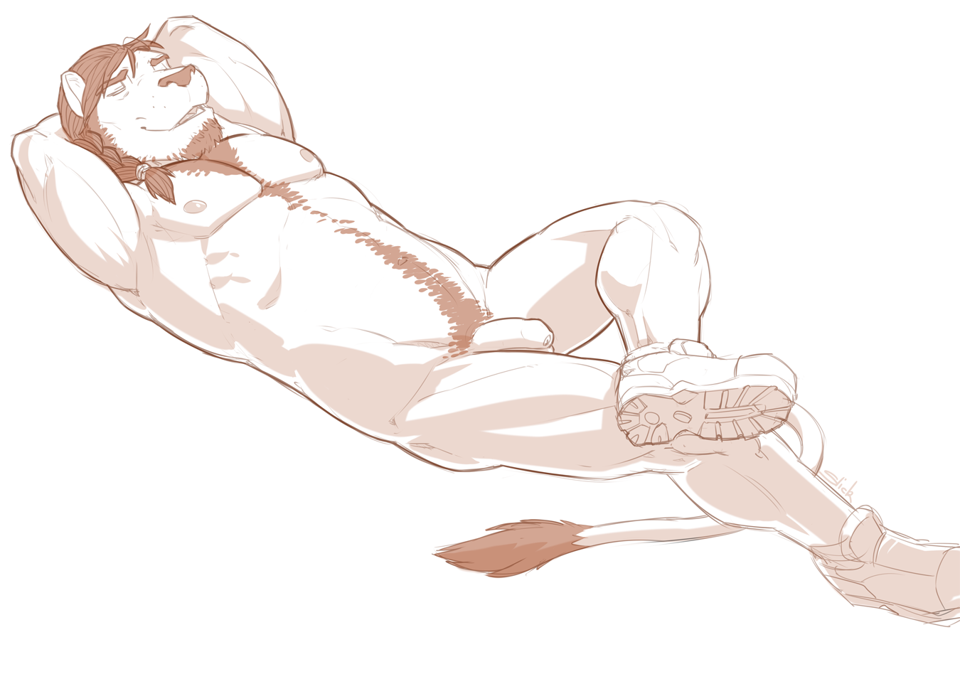 anthroarmpitsbicepsbraidclosed eyesfelineflaccidFlag for Deletionfurfurrygayhumanoid penislionmalemusclesnipplesnudepecspenisplain backgroundshoestreasure trail