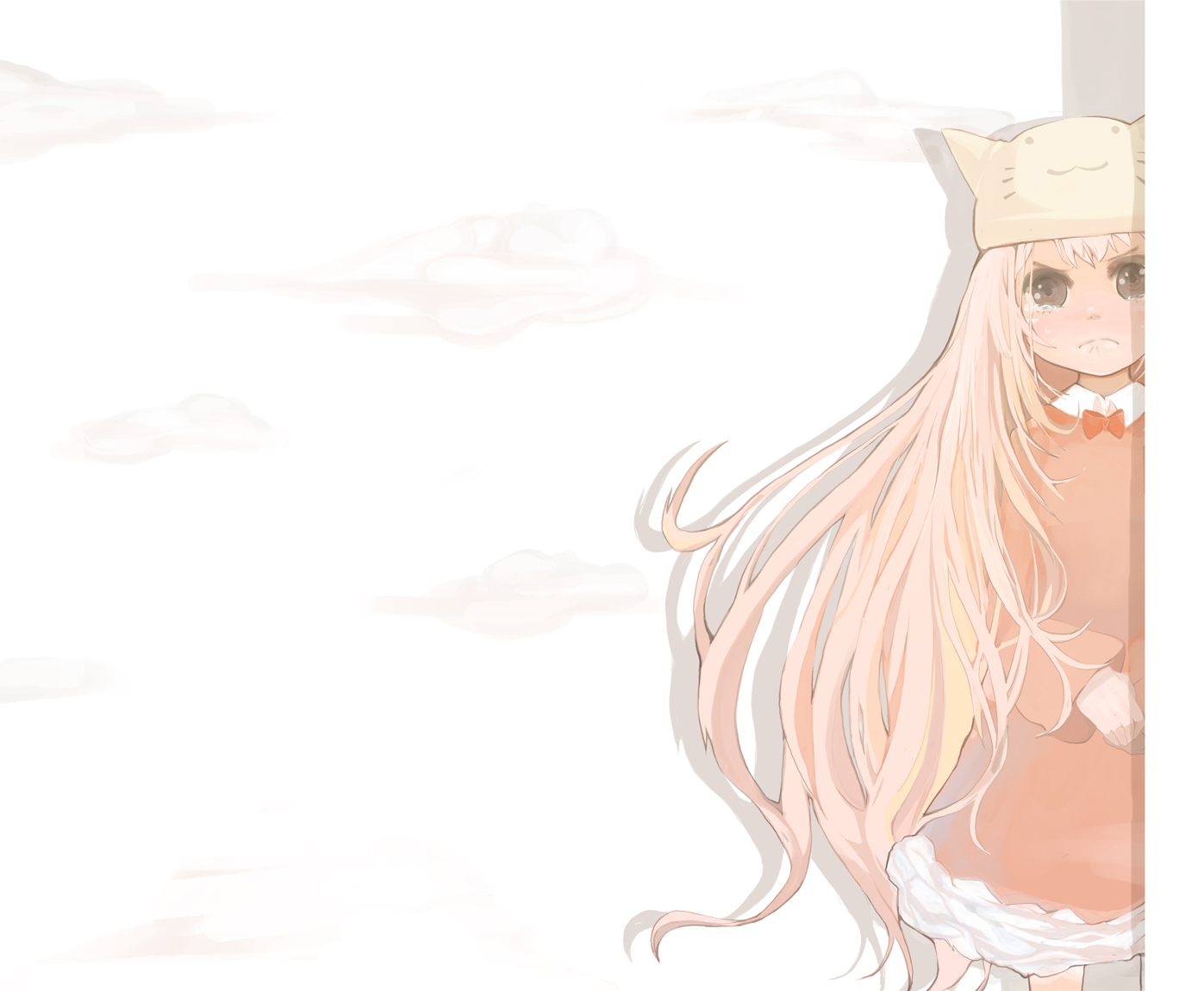 1girlangryanimal earsanimal hatcat earscat girlcat hatdressfemale focushatlong hairpeeking outpink hairsolotearsvery long hair