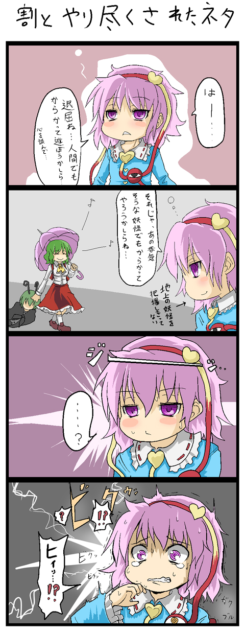 3girls4komaantennaeascotblush stickersboredbreastsbuttonscapeclosed eyescomiceyeballfemale focusfrillsfrom behindgreen hairhairbandheartmultiple girlsmusical notepink eyespink hairpullingscaredskirtskirt setsmiletearsthird eyetremblingumbrellavest