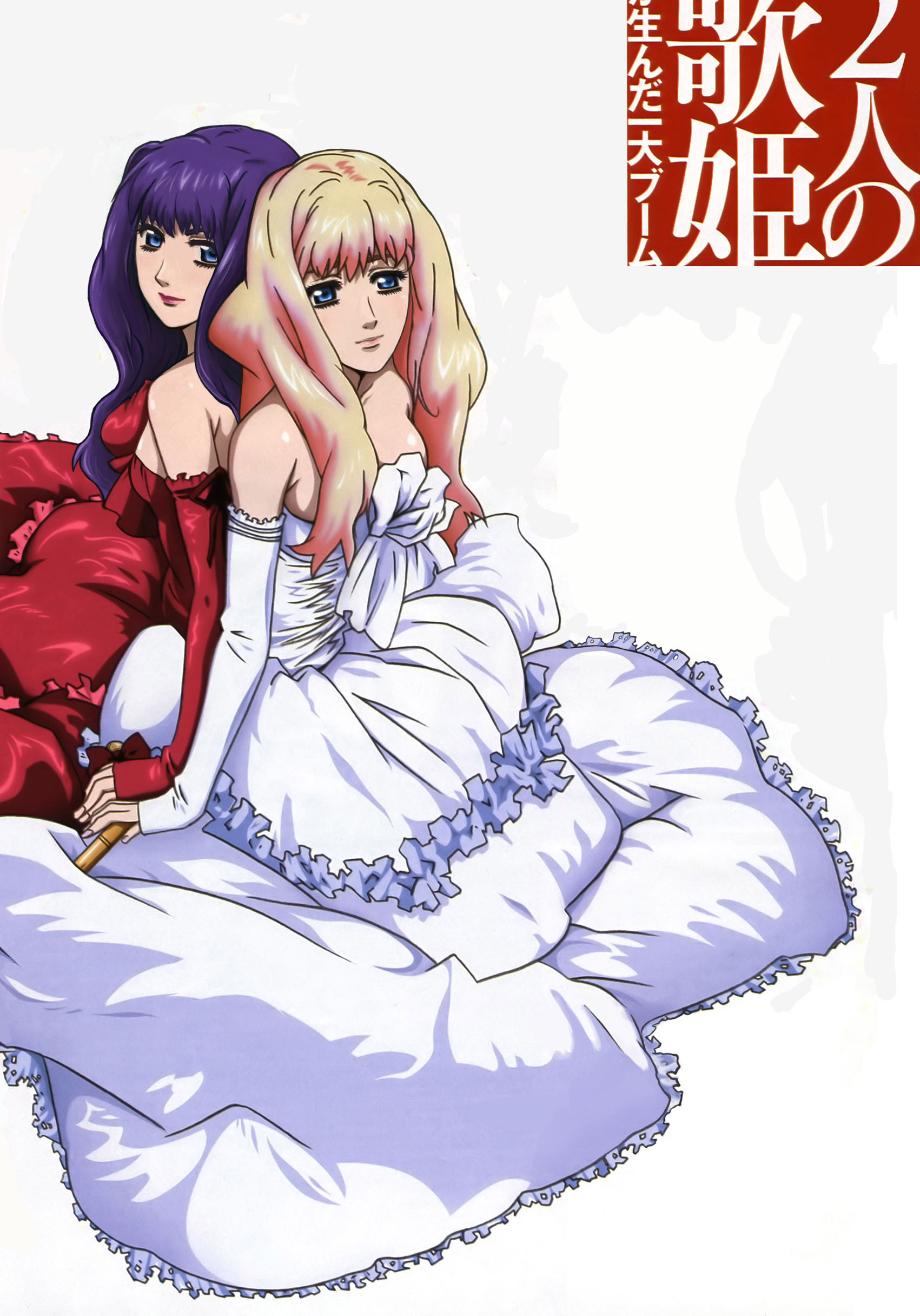 lolikko fukutaichou, hakurei reimu, mozgus (berserk), patchouli knowledge, berserk, touhou, 2girls, book, dress, female focus, hat, multiple girls, oekaki, parody, upper body