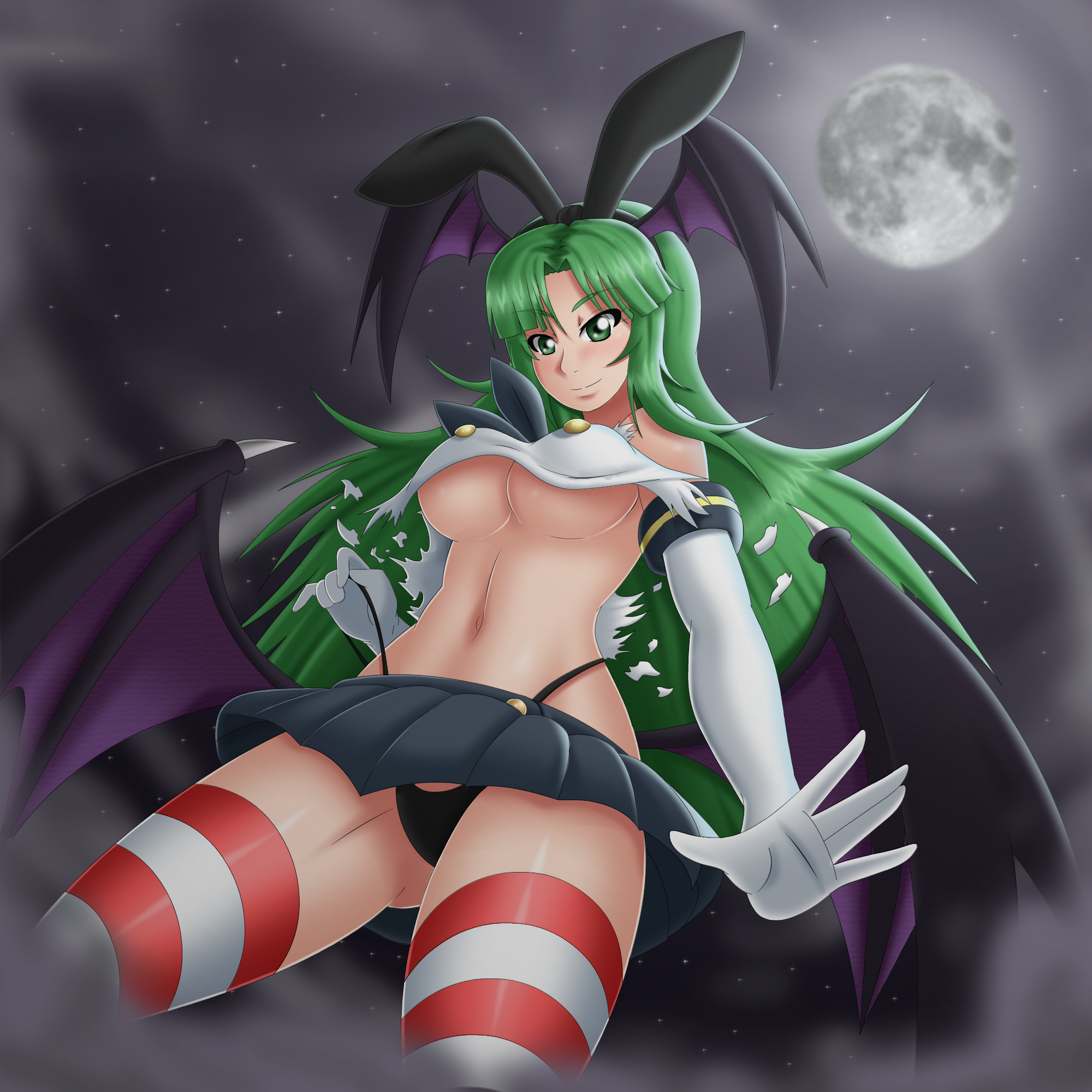 1girlsbat wingsblack pantiesbreastscosplaycurvyelbow glovesfemalefemale onlyFlag for Deletionglovesgreen eyesgreen hairhair ribbonhead wingshighleghighleg pantieslarge breastslong hairlooking downmoonnavelnightno braoutdoorspantiespanty pullribbonshimakaze (kantai collection) (cosplay)skirtskirt liftskysleevelesssleeveless shirtsmilesolostarsstripedstriped legwearsuccubusthighhighstorn clothestorn shirtunderboobwhite gloveswings
