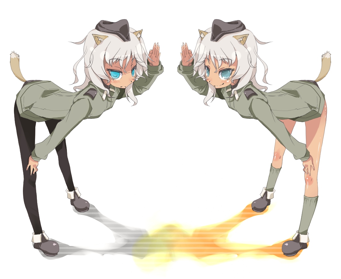 sugar (sugarless), 961 production, shijou takane, idolmaster, idolmaster (classic), idolmaster 1, silver hair, duplicate, 00s, 1girl, brown eyes, female focus, gloves, grey background, hand on own ass, long hair, looking back, microskirt, no panties, shaded face, simple background, sitting, sitting on face, sitting on person, skirt, solo, thighs, very long hair