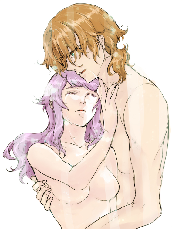 amii, yakumo yukari, touhou, bad id, bad pixiv id, highres, 1girl, armpit hair, armpits, breasts, female focus, large breasts, long hair, navel, nipples, nude, ribbon, solo, white background