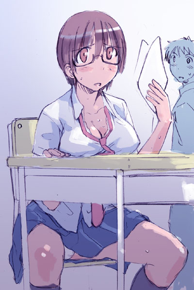 nekokun, hanyuu, higurashi no naku koro ni, lowres, 00s, 1girl, female focus, glasses, monochrome, purple theme, sketch, solo
