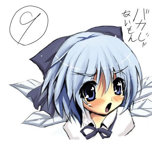 1girlangryblue eyesblue hairblushcircled 9female focushair ribbonmatching hair/eyesribbonshort hairsimple backgroundsolowings