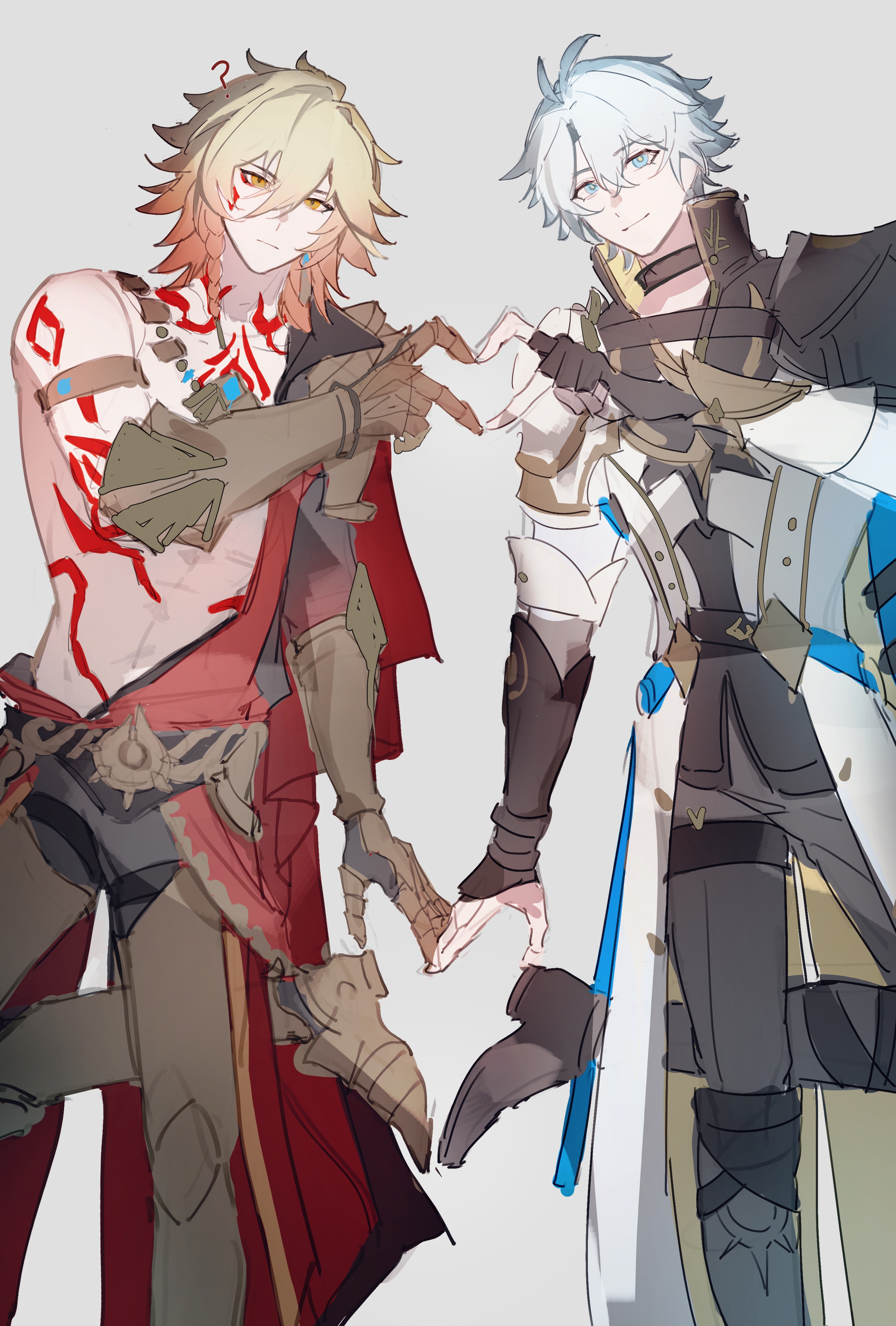 2boysantenna hairarm tattooarmletarmorarmored bootsblack chokerblack coatblack glovesblack pantsblack shirtblonde hairblue eyesbootsbraidchest tattoochokerclawed gauntletscoatearringsfacial tattoofingerless glovesglovesgold earringsgold necklacegradient hairgrey backgroundjewelrymale focusmedium hairmulticolored hairmultiple boysneck tattoonecklaceopen clothesopen coatpantsparted bangspauldronsred hairred tattooshirtshort hairshoulder armorside braidsimple backgroundsingle glovesingle pauldronsun symbolsun tattootantattoowhite coatwhite hairyaoiyellow eyesyimo6178