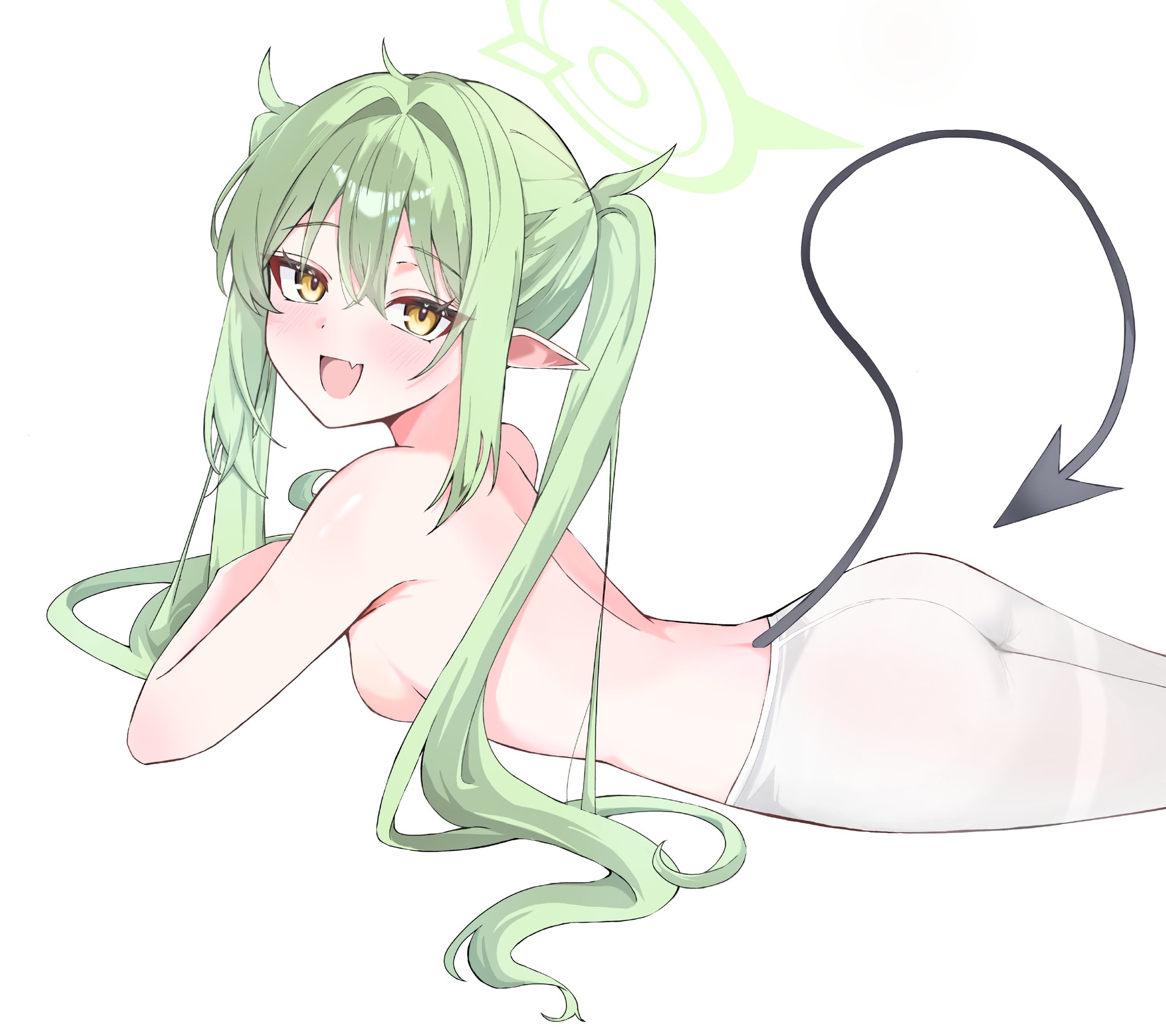 1girlaramonn chan019assblue vestbreastsdemon girldemon tailearringsfanggreen hairgreen halohalojewelrylong hairlooking at viewerlyingon stomachopen mouthpantyhosepointy earssimple backgroundskin fangsmall breastssolotailtopless femaletwintailsvery long hairvestwhite backgroundwhite pantyhoseyellow eyes