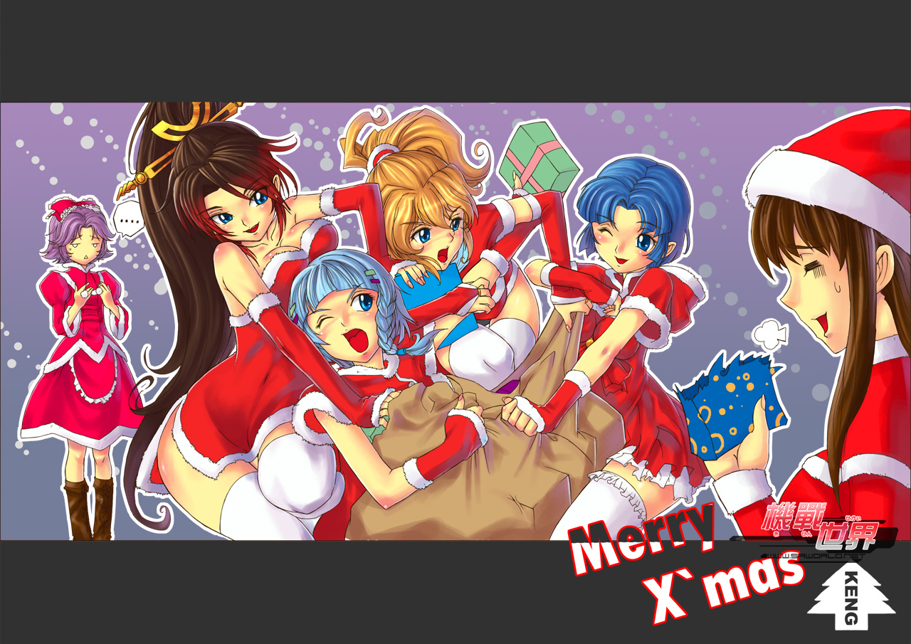 6+girlsblonde hairblue hairbowbreastsbrown hairchristmascleavagedressgiftlarge breastslong hairmultiple girlspurple hairsanta costumeshort hairstraplessstrapless dressthighhighs