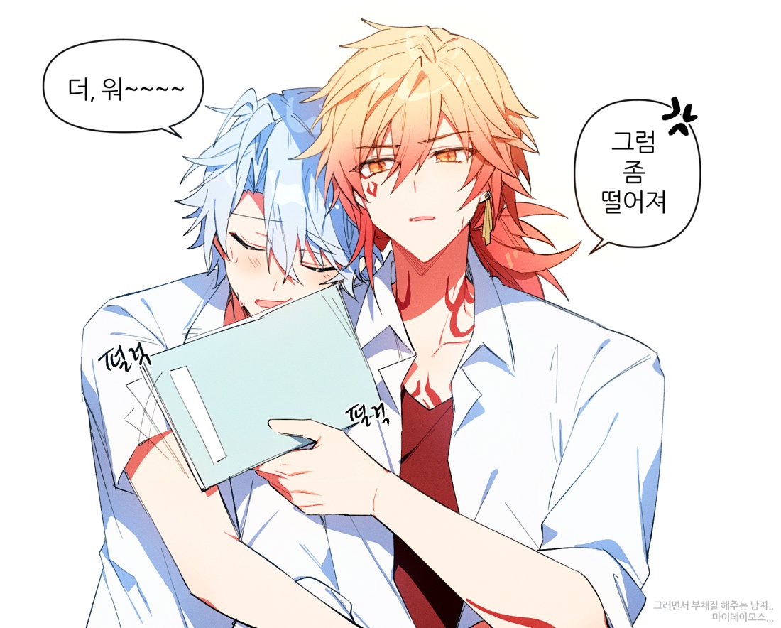 2boysantenna hairarm tattooblonde hairbraidchest tattooclosed eyescollared shirtearringsfacial tattoogold earringsgradient hairhugjewelrykorean textmale focusmedium hairmulticolored hairmultiple boysopen clothesopen shirtparted bangsred hairred shirtred tattooshirtshort hairside braidsimple backgroundtattoowhite backgroundwhite hairwhite shirtyaoiyellow eyes