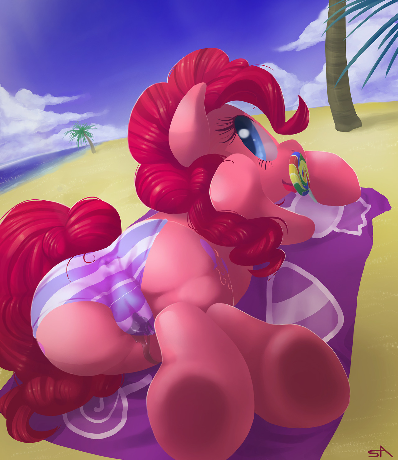 blue eyescameltoecandycutie markdayequinefemaleFlag for Deletionhairhorselickinglollipoplooking backon frontoutdoorspantiespink furpink hairponypussy juicesandsignaturesolotonguetreeunderwear