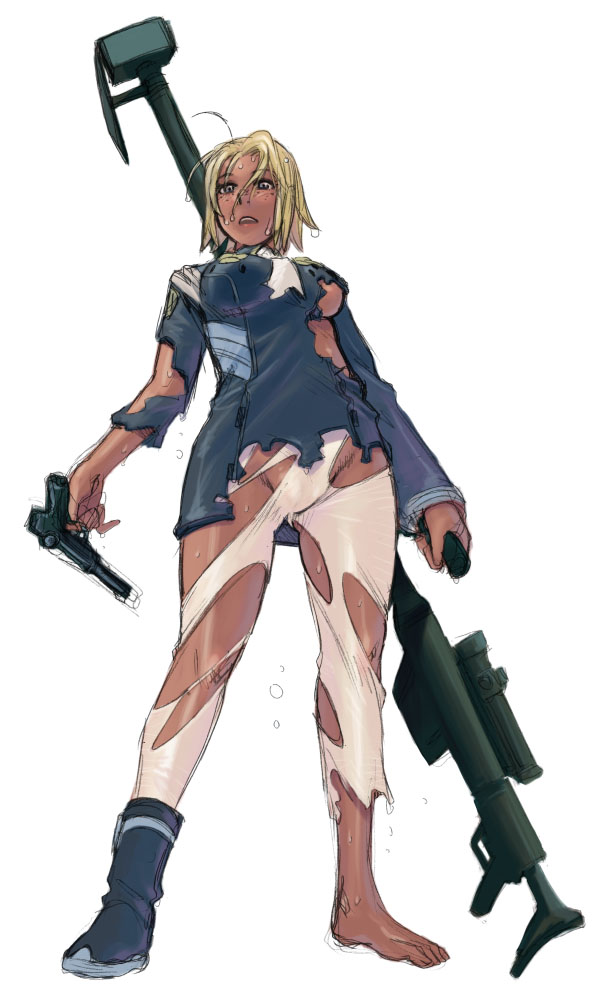 00s1girlanti-materiel riflebarefootblonde hairbreastsdark skindark-skinned femalefeetfemale focusgunhandgunlarge breastsleggingsmilitarymilitary uniformpistolrifleshadowshoesshort hairsingle shoesketchsniper riflesolostandingtorn clothesunderboobweapon
