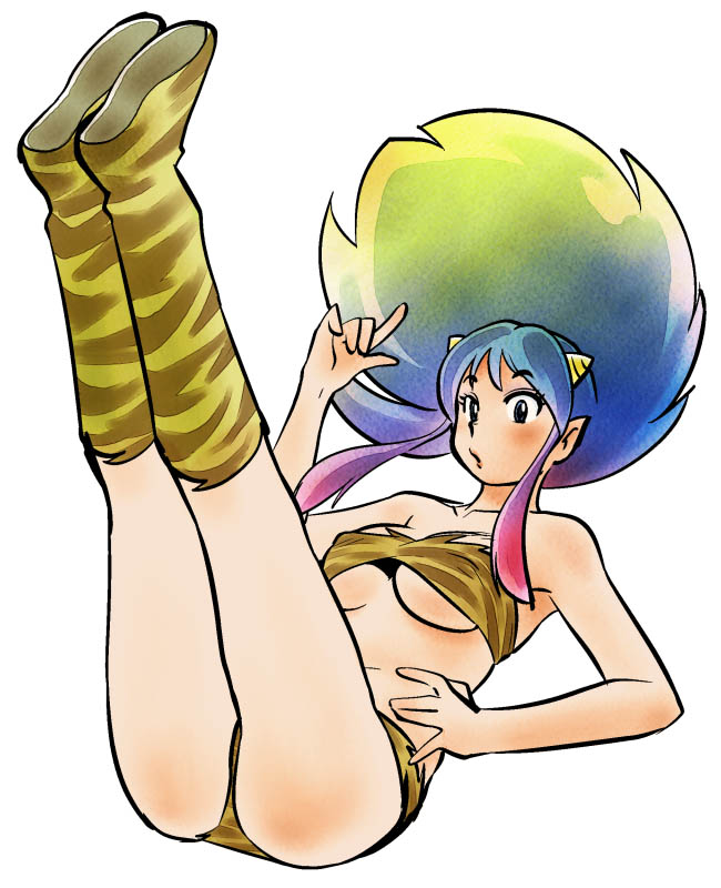 1girlanimal printassbikinibootsbreastscone hornsfemale focusfull bodyhornslong hairmedium breastsmulticolored haironipointy earssimple backgroundsmall hornssolostriped hornsswimsuittiger printunderboobyellow bikiniyellow horns