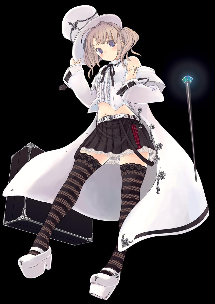1girlblack thighhighsfemale focushatlacelace trimsolostriped clothesstriped thighhighsthighhighszettai ryouiki