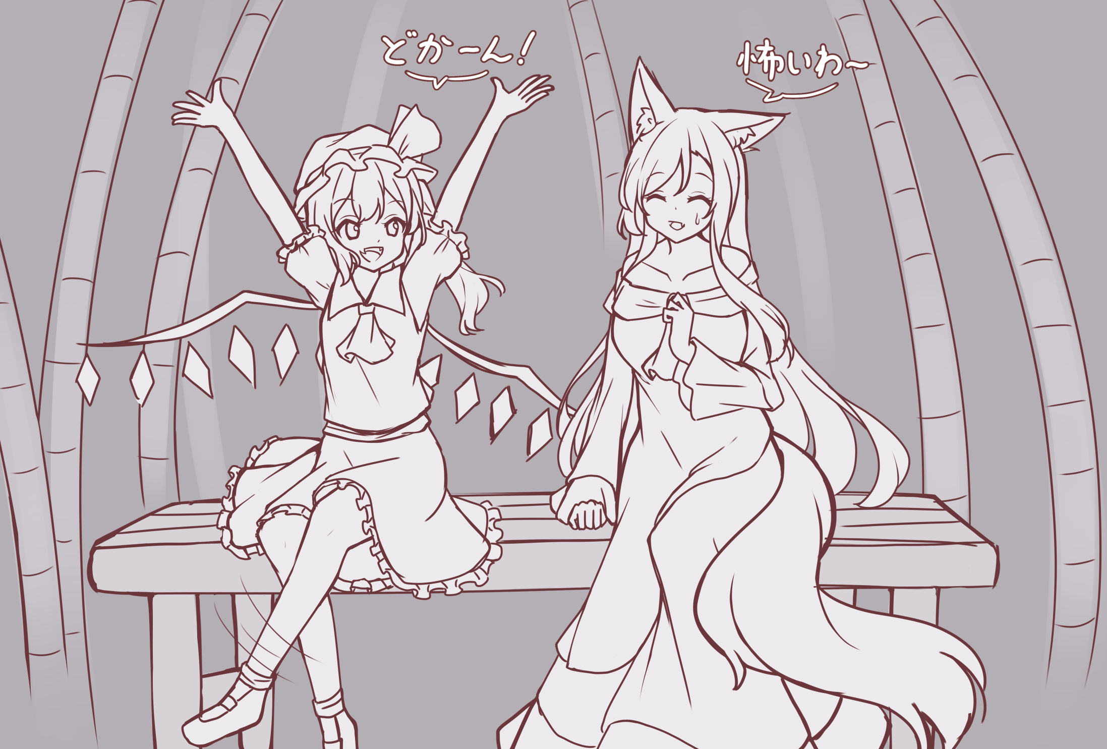 mathnote, alice margatroid, alice margatroid (pc-98), kirisame marisa, kirisame marisa (pc-98), mystic square, phantasmagoria of dim.dream, touhou, touhou (pc-98), grabbing, 2girls, angry, arm support, between legs, blonde hair, blue eyes, blush, bow, child, crescent, female focus, hair bow, hat, long hair, long skirt, looking at another, multiple girls, red eyes, ribbon, short hair, simple background, sitting, skirt, witch, witch hat
