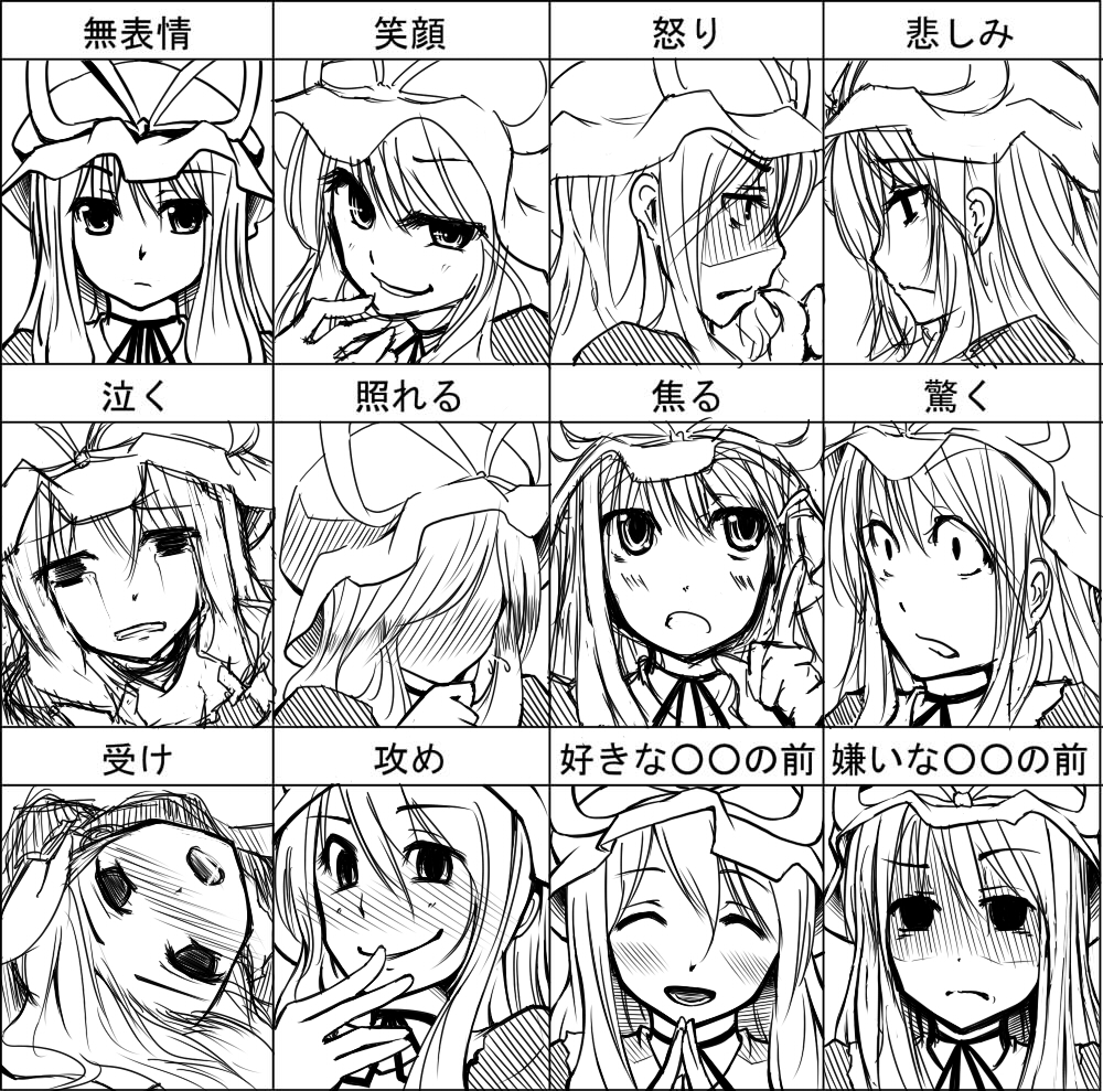 1girlblushchartcryingcrying with eyes openfemale focusgreyscalemonochromemultiple expressionsmultiple viewstears