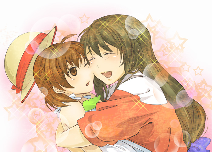 00sbrown eyesbrown hairbucket hatclosed eyeshathuglong hairone eye closedshort hairsparklewink