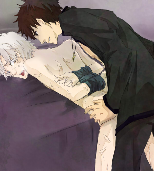 balflear, larsa ferrinas solidor, final fantasy, final fantasy xii, 00s, 2boys, gloves, hug, male focus, multiple boys, pteruges, sad, tears, vest, yaoi
