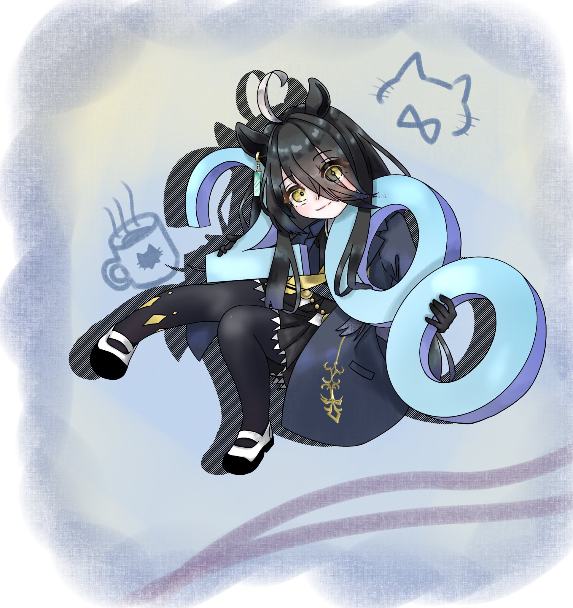 1girlahogeanimal earsblack coatblack glovesblack pantyhoseblack shirtblack skirtcatchibiclosed mouthcoatcontrast collarcupear ornamentear tagearringsgloveshair between eyeshorse earshorse girljewelrylong bangslong hair between eyeslong sleevesmilestone celebrationmulticolored hairnecktiepantyhosepleated skirtshirtshoessingle earringskirtsmilesolowhite hairwhite shoesyellow eyesyellow necktie