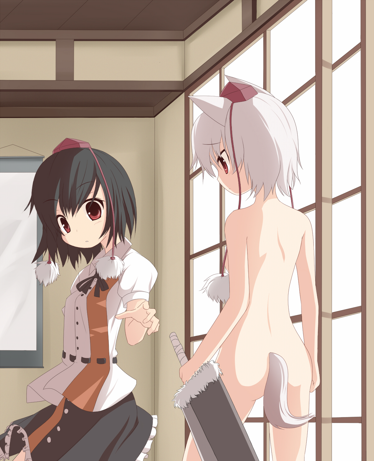 ryu (ryu's form site), 2girls, blue eyes, breasts, cleavage, eyepatch, large breasts, multiple girls, nipples, nude, purple hair, red hair