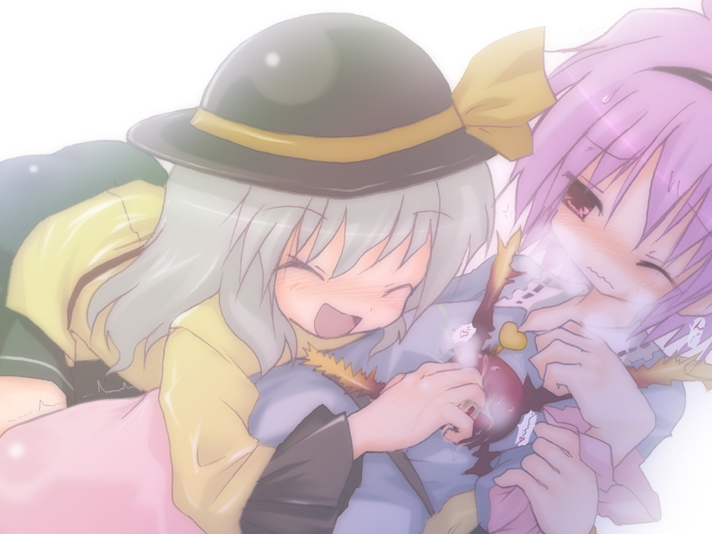 2girlsblue hairblushclosed eyesfemale focusfingeringincestmultiple girlsone eye closedpink hairred eyessiblingssisterssmileuncommon stimulationwink