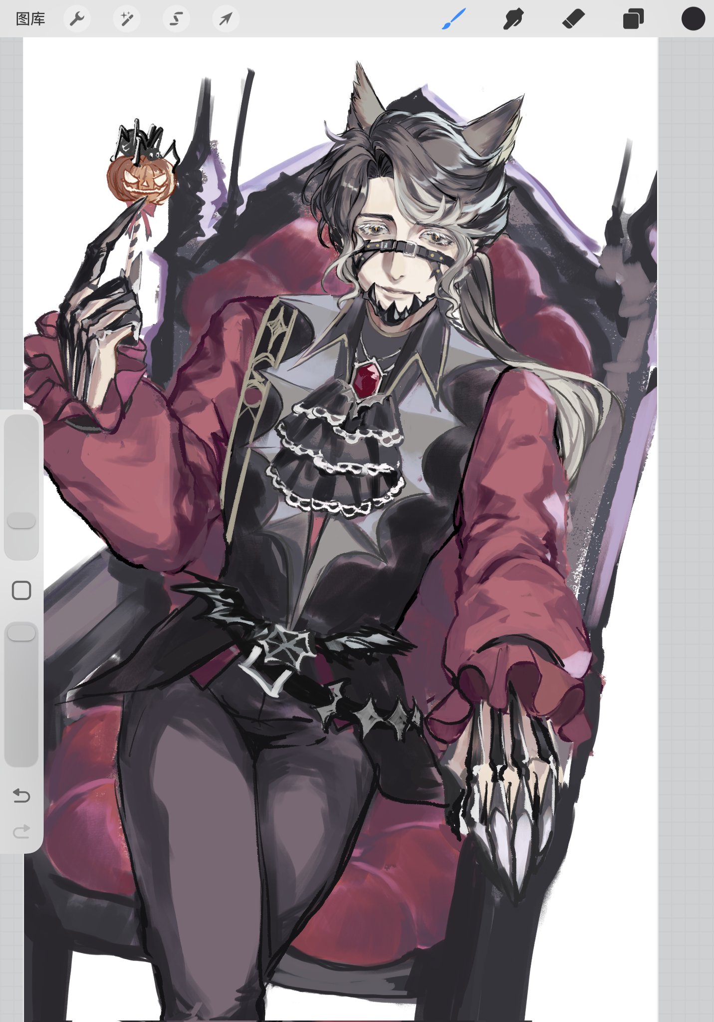 1boyanimal earsascotbeltblack ascotblack beltblack pantsblack vestbroochcat earschairclawscrossed legsfacial hairfeet out of framefingernailsfoodfrederick kreiburgfrederick kreiburg (umber)frilled sleevesfrillsgemgrey eyesgrey hairholdingjewelrylong hairlong sleeveslooking at viewermale focusmaocha millumulticolored hairmuzzle (mask)on chairpantsponytailpumpkinred shirtshirtsittingsmilesolovestwhite backgroundwhite streaks