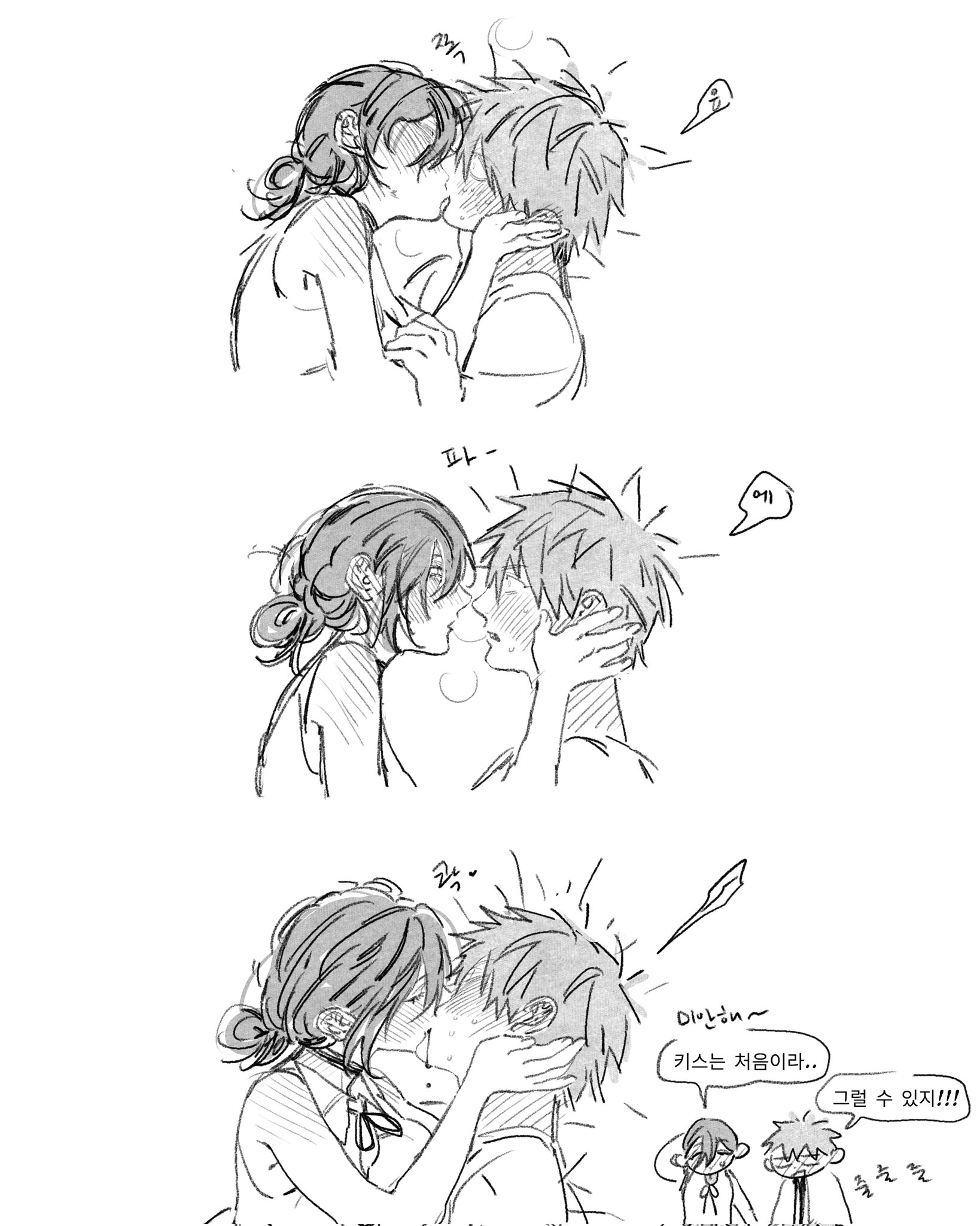 1boy1girlarm behind headblushchokercouplegreyscalehair between eyeshair bunhand on another's cheekhand on another's faceheavy breathingheteroholding handskisskorean textlooking at anothermedium hairmonochromeneck ribbonparted lipsribbonsalivasaliva trailshirtshort hairshoulder blushsleevelesssleeveless shirtsweatupdoupper bodywhite backgroundwhite shirtwide-eyed