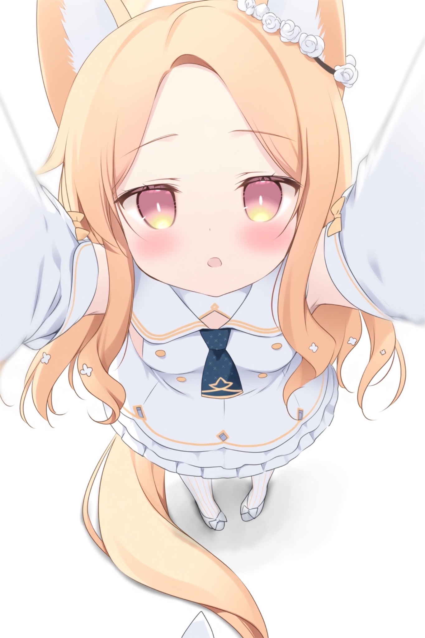 cool squid398, misaki sango, re:stage!, absurdres, highres, 1girl, animal ear hairband, animal ears, bare legs, black bow, black bowtie, black hairband, black leotard, bow, bowtie, breasts, detached collar, fake animal ears, feet out of frame, green eyes, hair intakes, hairband, hand on own thigh, leaning forward, leotard, long hair, looking at viewer, purple hair, simple background, small breasts, solo, strapless, strapless leotard, twintails, white background