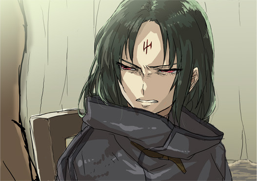 1boydisgustfacial markforehead markgreen hairlong hairmale focusparted lipsred eyessoloupper body