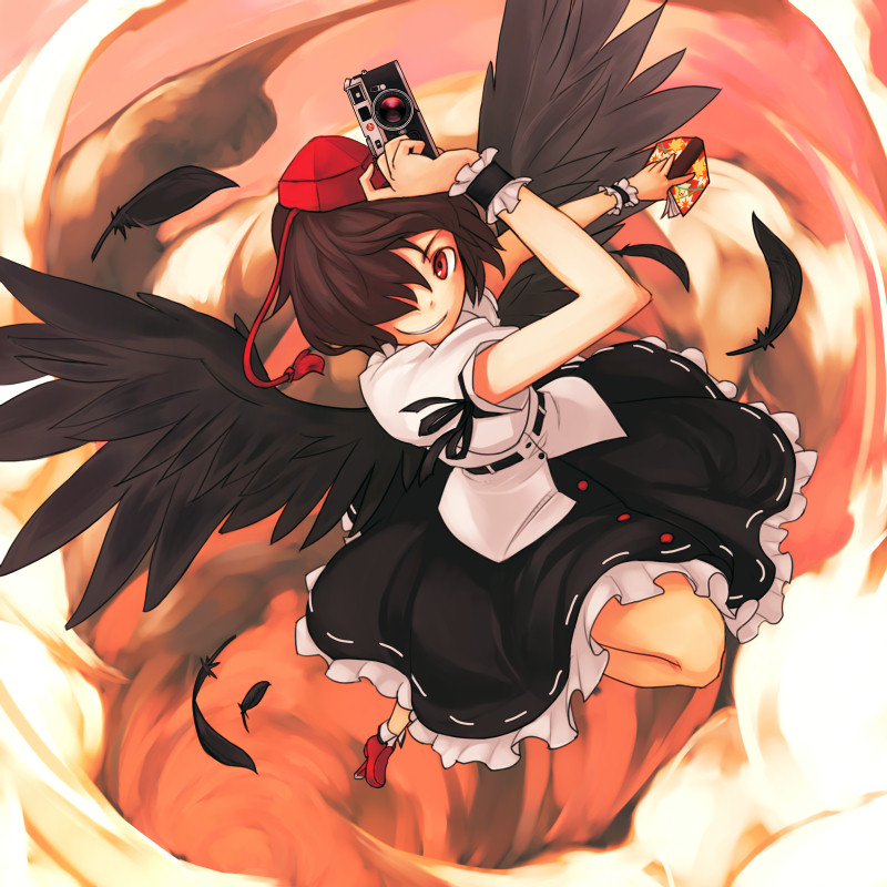 d4kou16, mahou shoujo no majo saiban, highres, 1girl, :d, belt, black belt, black gloves, black jacket, black pants, black shoes, brown hair, epaulettes, full body, gloves, hair ornament, hand on hilt, hand up, hasumi reia, jacket, long sleeves, looking at viewer, magical girl, open mouth, pants, sash, sheath, sheathed, shoes, short hair, shoulder sash, smile, solo, standing, sword, weapon, white background, yellow eyes