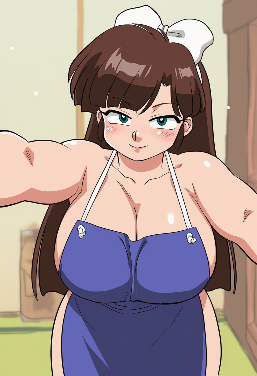 ai generatedapronapron onlybare shouldersbreastsbrown haircleavagefemalefemale focusfemale onlyFlag for Deletionhuge breastslarge breastslong hairsolosolo femalesolo focus